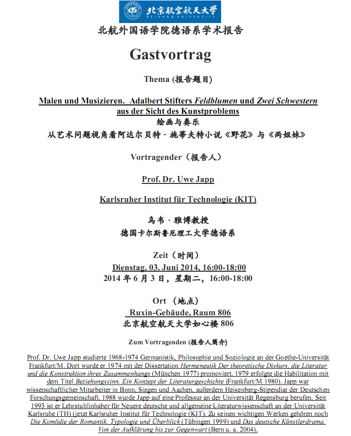 德国卡尔斯鲁厄理工大学Uwe Japp教授讲座通知