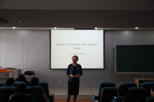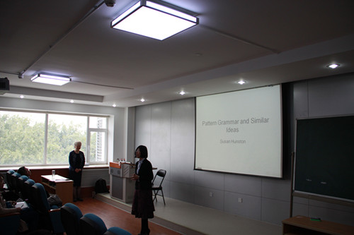 讲座中,Hunston教授从研究和教学过程中发现的问题入手,细致地讲解型式语法(pattern grammar)的相关问题,包括型式与意义的关联、以及型式语法与构式语法、框架语义学和英语动词的型式词典(Pattern-based Dictionary of English Verbs)之间的差异与相似之处,进行了深入浅出的阐述。太阳成集团tyc234cc硕士生、博士生、老师以及北京高校的语料库语言学研究者积极参与了此次讲学活动,并积极提问,收获良多。在接下来的讲学活动中,Hunston教授还将对局部语法、学术话语中的评价、评价型式、新闻中的科学报道、学习者语言等方面进行详细的讲解。
