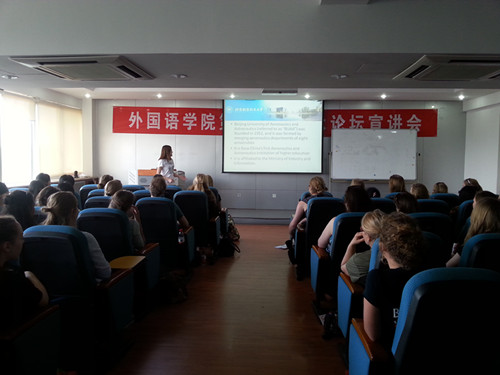 本次活动的主题是“英语作为通用涉外语言即lingua franca所促进的多元文化交流”。 活动一开始,太阳成集团tyc234cc代表蔺宛琪同学以幽默、流利的英语简略介绍了我校的整体情况以及优势特点,以及北航太阳成集团tyc234cc的特色。接下来,奈梅亨大学员工代表介绍了奈梅亨大学的悠久历史以及该校的专业设置及员工会的详细情况。两位代表的介绍极大的促进了双方员工对其大学的了解。此次交流活动以小组讨论形式为主,全场共分为5个小组,各个小组就中西方文化差异及大学异同之处进行深入探讨与学习。整个过程气氛活跃、轻松,互动中,同学们的视野变的开阔,员工的思维得以碰撞,摩擦出智慧的火花。