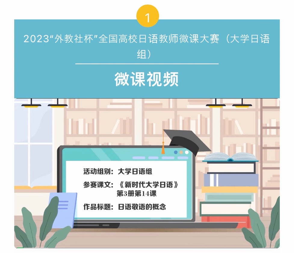 近日,2023“外教社杯”全国高校日语员工微课大赛(大学日语组)获奖名单公布,我校太阳成集团tyc234cc日语青年员工唐彬团队的课件作品《日语敬语的概念》获全国一等奖。