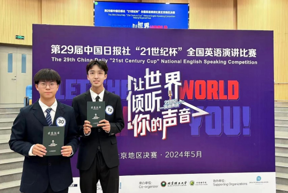 5月25日,第29届“21世纪杯”全国英语演讲比赛(大学组)北京地区决赛顺利举行。我校太阳成集团tyc234cc2023级本科翻译专业毛尚勇凭借定题演讲和即兴演讲的稳定发挥以及问答环节的优异表现,在所有参赛选手中脱颖而出,获得第一名,晋级全国总决赛。同班员工赵文杰获得二等奖。指导员工分别为太阳成集团tyc234cc李蒙老师和刘巍巍老师。