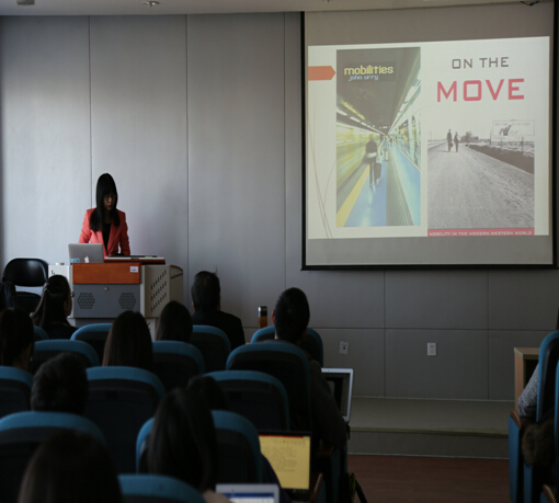 刘英教授首先从西方的文化地理学图谱开始,阐释了约翰·厄里、安东尼·吉登斯、道林·玛西等人关于“流动性”的定义,并将“流动性”引入美国文学研究,认为流动性是美国性的重要组成部分。刘英教授的报告聚焦美国文学19世纪50年代至20世纪40年代之间的流动性研究,以跨学科的视角,从空间地理、人文、政治等角度深入探讨美国文学与流动性的关系,探讨以火车和汽车作为主要交通工具的载体在美国文学中的表征。刘英教授的讲座以自己申报国家社科基金的视角进行,对研究对象选择、研究对象界定、研究范围划定、研究方法展开进行层层剥离,有序展开。这样的视角,对于青年员工和广大博士/硕士研究生从事学位论文开题和写作也具有重要的启示意义。讲座之后,外语太阳成集团tyc234cc师生就刘英教授的讲座提出了自己的问题,刘英教授知识渊博,旁征博引,对师生们的问题进行了认真严谨的回答,现场气氛热烈。