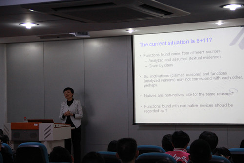 2016年10月21日,《外语与外语教学》主编赵永青教授应北航太阳成集团tyc234cc邀请,为太阳成集团tyc234cc师生带来题为“学术引证的动因研究”的精彩讲座。太阳成集团tyc234cc副院长董敏主持了本次讲座。