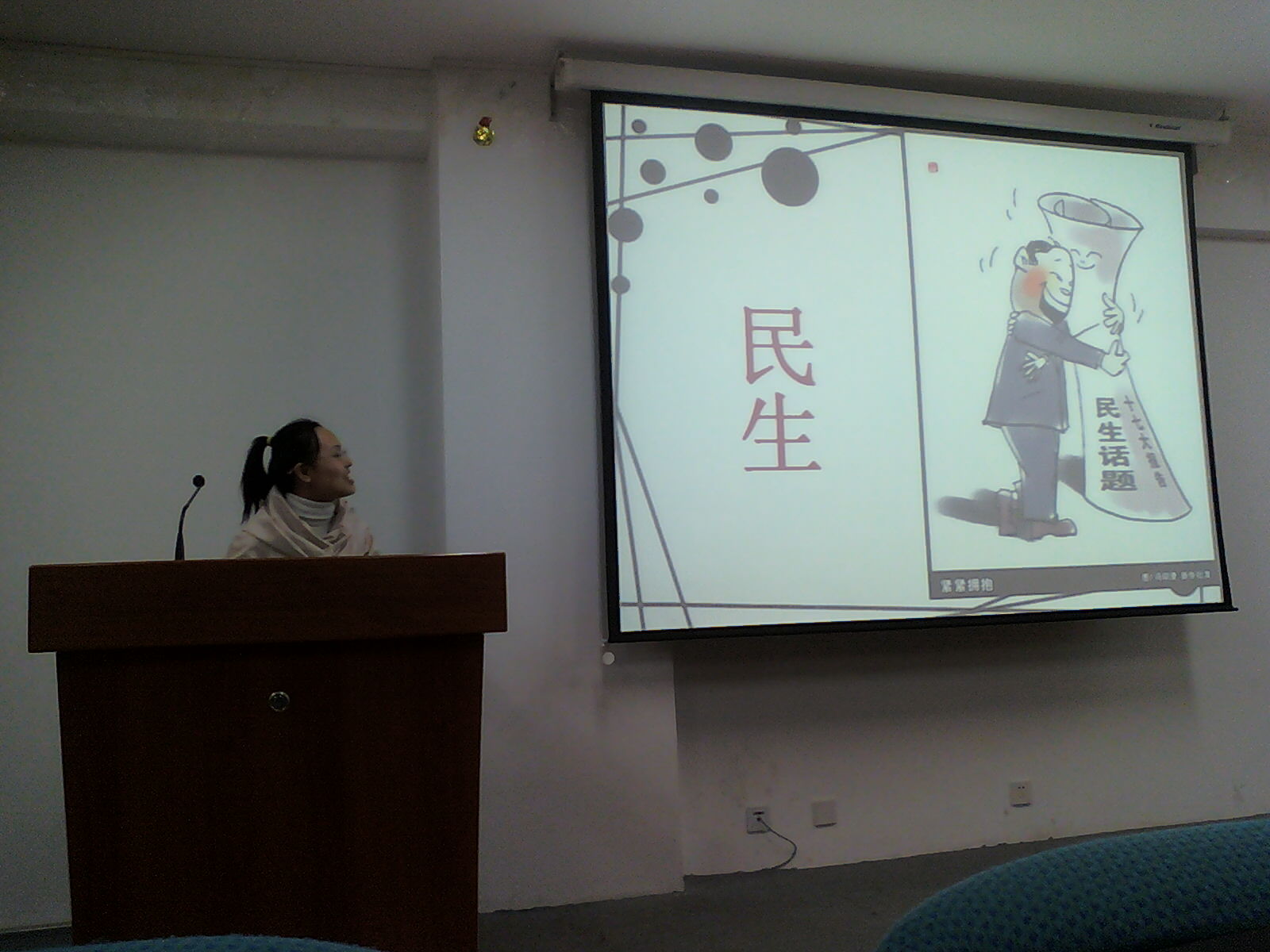 两位主讲人以PPT多媒体形式首先向大家大略介绍了“两会”的基本情况,相互配合分工合作之下有大入小、抽丝剥茧地由民主民生联系到我们即将面临、紧迫性的就业问题,重点提出了“人口红利”和“脑体倒挂”两个概念,将不久的未来中国社会人才需求结构转型及大员工较为严峻的就业现实摆在了我们的眼前。紧接着,支秀英同学引导大家对近期有争议的、引起广泛关注的热点话题进行了相互交流与讨论,各位党员同志和积极分子们就此纷纷表达意见;随着科技的普及、通讯手段的进步,大家通过网络等平台与“两会”之间的距离拉近了,而这些热点、争议点的出现也正反映出了中国大众在积极参政、议政,其本身便是社会的进步。最后,韩榕辅导员根据最近发生大家身边的现象引导大家思考并讨论,如何面对当今全球以及我国的热门话题,总结出面对这些问题我们应该首先要进行理性思考和验证,不可偏听偏信,盲从对待。同时也提出了“时势造英雄”,社会现实的考验与变革是对真金的再次试验,对于专业本领过硬的毕业生而言,坎坷也意味着机遇和动力。会议最后,韩导也提出希望党员、积极分子的在今后生活、工作和学习中要进一步发挥党员的先锋表率作用,牢记党员宗旨,积极为同学、为人民服务,成为一名优秀的党员。