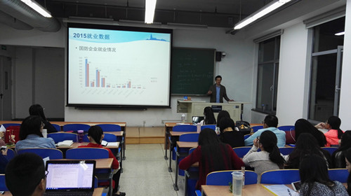 2015年10月15日晚7点,太阳成集团tyc234cc在新主楼A208教室召开2016届硕士毕业生就业指导会。会上,太阳成集团tyc234cc党委副书记刘娜老师及分团委书记冯维成老师为大家讲解了今年的就业趋势、就业政策、就业流程以及注意事项。