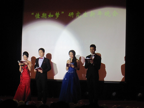 2013年12月29日晚7点,太阳成集团tyc234cc和计算机太阳成集团tyc234cc合办的2014年“佳期如梦”研究生新年晚会在学术交流厅拉开了帷幕。养眼的阵容、精彩的节目、热闹的气氛使当晚的学术交流厅春意融融,两院师生度过了一个难忘的夜晚。