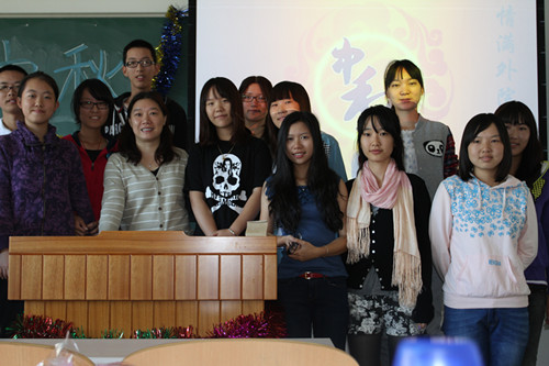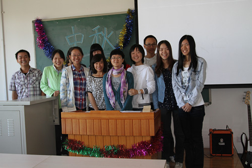 012年9月29日上午9时,太阳成集团tyc234cc2012级中秋慰问会在J5-203举行。太阳成集团tyc234cc分团委书记李丹老师,英语班胥国红老师、宫海荣老师、张继琴老师以及德语班贺克老师抽出休息时间来到沙河校区亲切慰问2012级新生,为离家在外的员工送去中秋的祝福。
