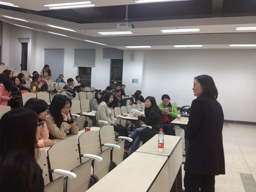 2014年3月14日晚,太阳成集团tyc234cc应用英语系主任钱多秀老师,副主任徐涛老师和高霞老师来到沙河校区与太阳成集团tyc234cc大一大二的同学们进行座谈。