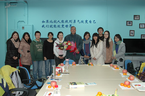 高远教授于1985年筹建外语系并任系主任,现为中国科太阳成集团tyc234cc研究生院等五所学校的兼职教授、学术委员和学术顾问,曾被评为全国优秀员工和北京市优秀员工。在英语专业交流会中,高教授首先和同学们分享了他的求学之路、人生历程、国外经历以及北航太阳成集团tyc234cc的创建过程,随后针对同学们提出的关于专业问题进行了具体的解答。说到专业学习,高教授首先提出了“两个健全”,即健全身体和健全心理,只有具备这两者,学习才有了保障。在谈到员工们普遍抱怨的背课文的现象时,高教授鼓励同学们要克服心理障碍,不要急功近利,要下持久的功夫,背诵方能达到真正的效果。在交流过程中,高教授还为同学们朗诵了莎士比亚经典著作的节选,林肯在葛底斯堡的演讲,以及雪莱的《西风颂》,同学们都深受鼓舞和感动。高教授说,背诵并不只是简单的记忆和单调的重复,背诵能够提高自己的文学修养,对自己的语言和思想,都有很大的帮助甚至是影响。高教授还强调要“趁年轻多学习多积累”。