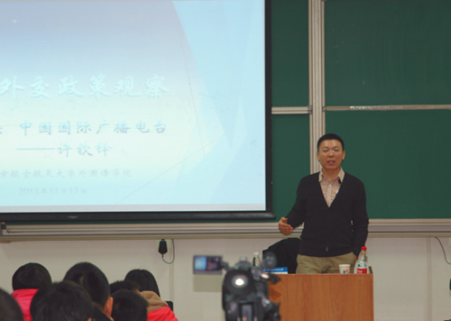1月13日下午,前中国国际广播电台驻美首席记者,大型直播新闻访谈广播节目《今日》主持人、制作人许钦铎走进北航博雅课堂,为同学们带来一场题为“习李外交政策”的报告。许钦铎先生以习李出访为主要线索讲述了中国与俄罗斯等友好领邦以及与印度等重要国家间的关系和发展趋势;以一系列具体实例为引,重点分析了我国周边安全局势及趋势研判;并涉及众多同学们十分关心的岛屿争端、恐怖主义等社会热点问题;随后又从巩固我国国家能源安全的角度阐述了重建“丝绸之路”的意义。