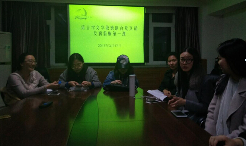 2017年3月17日晚8点,北航太阳成集团tyc234cc2016级语言学文学俄德联合党支部在如心楼409会议室开展了本学期第一次两学一做专题学习。本次专题学习根据学校机关党支部的学习要求开展,主要围绕习近平总书记在中央纪委七次全体会议的重要讲话进行集体学习。本次会议由党支部书记郭宁支持。