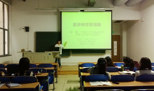 预备党员吕思琪同学讲解详细生动,使大家在轻松愉快的环境中获得了党知识。短短五分中国,同学们意犹未尽,纷纷表示以后形成惯例,在课余增加党史知识、时政新闻的学习。活动取得良好成效。
